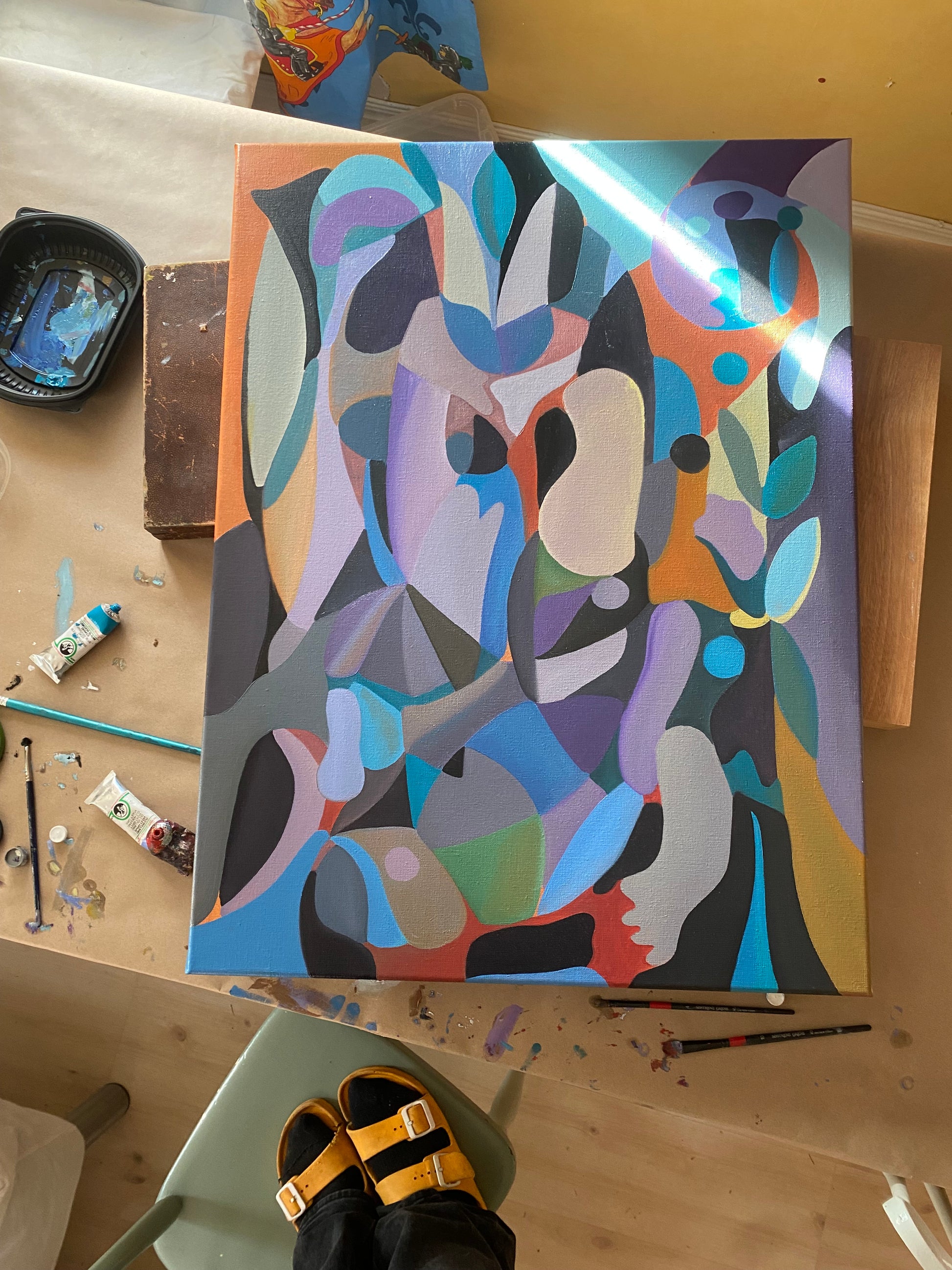 "Foot in the jungle" – Icke-figurativ oljemålning, passar kontor eller hall (Ej färdig)